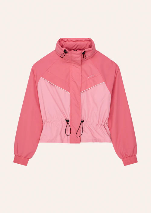 The Shelter Jacket in Pink Lemonade is designed in our signature water resistant spray fabric. This cropped jacket features contrast chevron panelling, a hidden chest pocket, an elasticated drawcord waist and a packable hood. Wear your jacket over activewear for an elevated athleisure look.