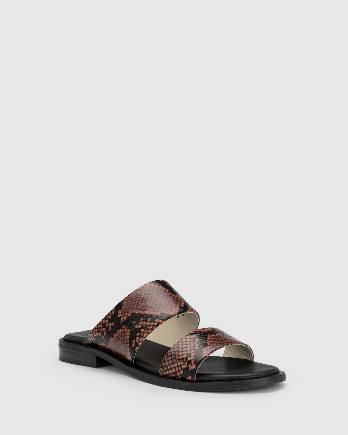 Earthy and elevated, the WAVE SLIDE in Coco Snake blends rich brown tones with subtle texture. This understated embossed leather slide brings a refined finish to everyday outfits, with a soft heel that makes it easy to wear all day.