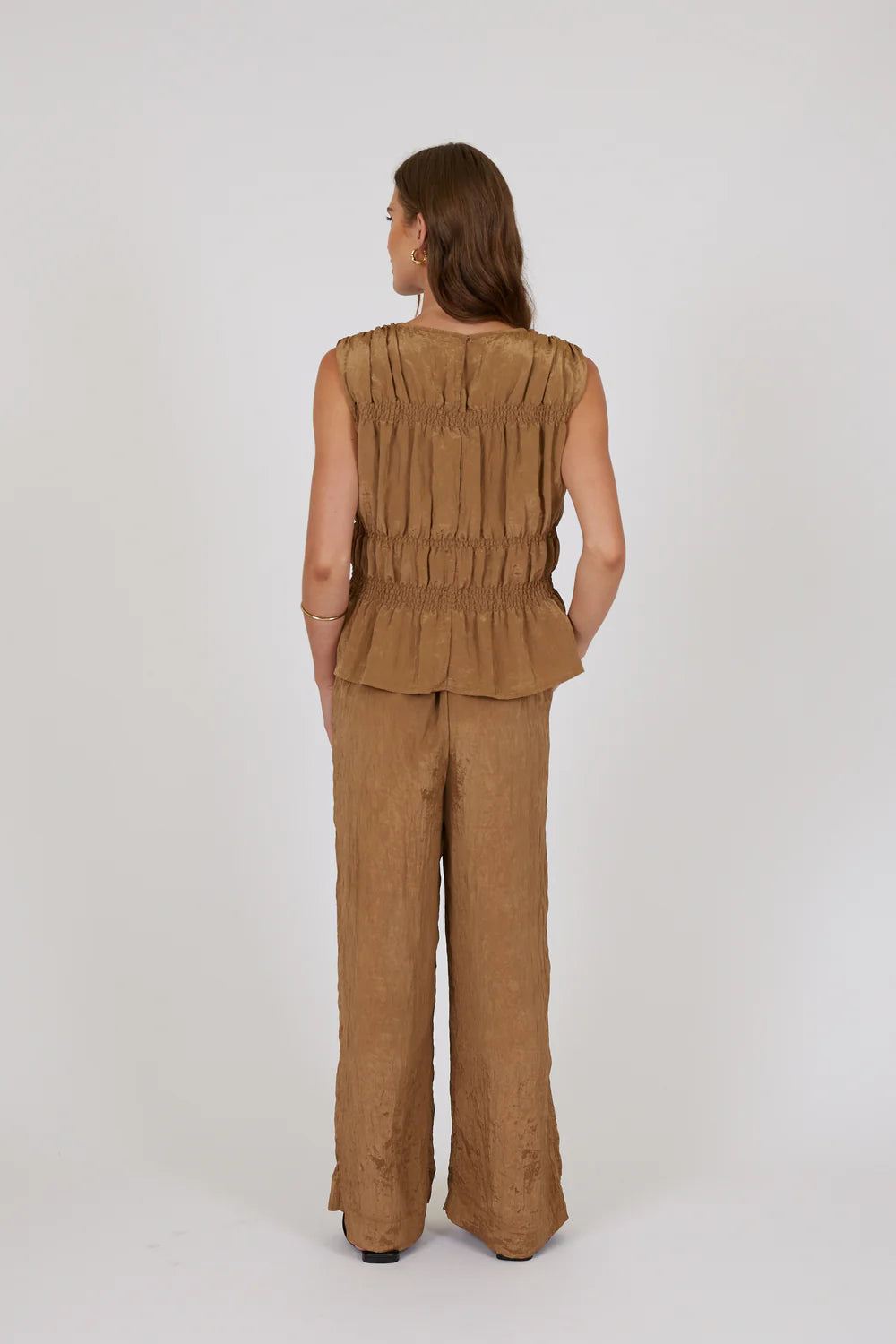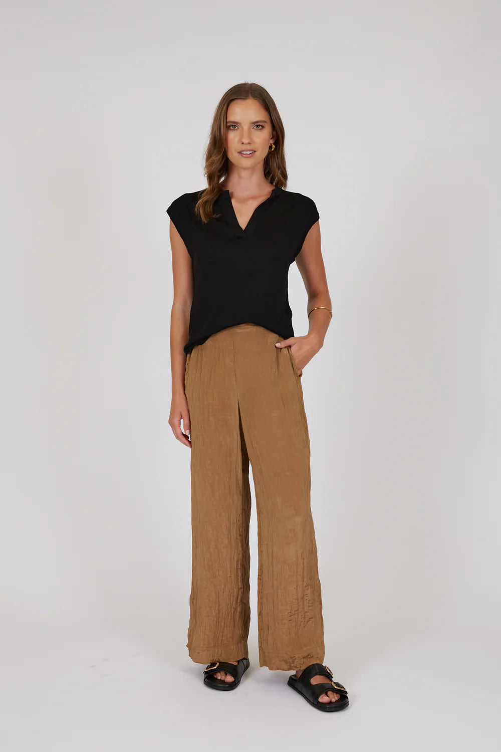 Flowy and textured, the Lumi Pant is an elevated take on a classic. Crafted from a lightweight, crinkled fabric with a subtle sheen, it features a full-length, wide-leg silhouette. The flat front waistband creates a clean, polished look while the elasticated back provides a perfect fit and feel. Finished with angled side pockets, it pairs perfectly with the Lumi Top or Lumi Tank for a coordinated set that feels relaxed yet polished.