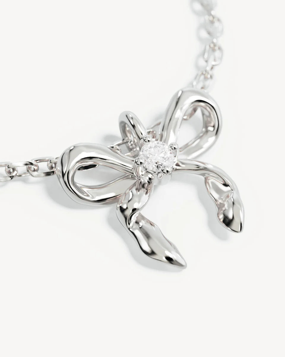 The Forever More Bow Necklace is a playful and delicate ode to love and romance. This keepsake is a tangible expression of the saying "tied together", with the bows symbolising love, cherished bonds, and devotion.