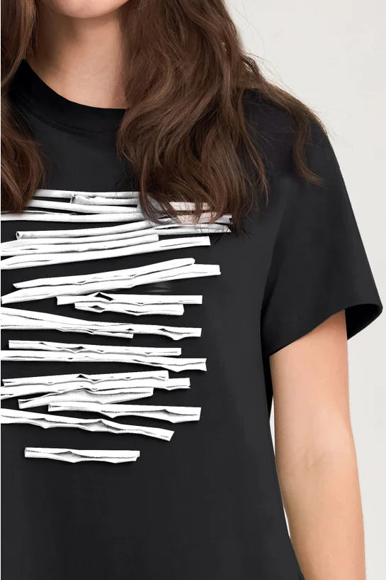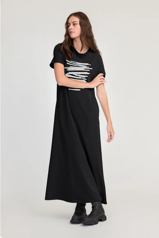 - A-line silhouette with short sleeves