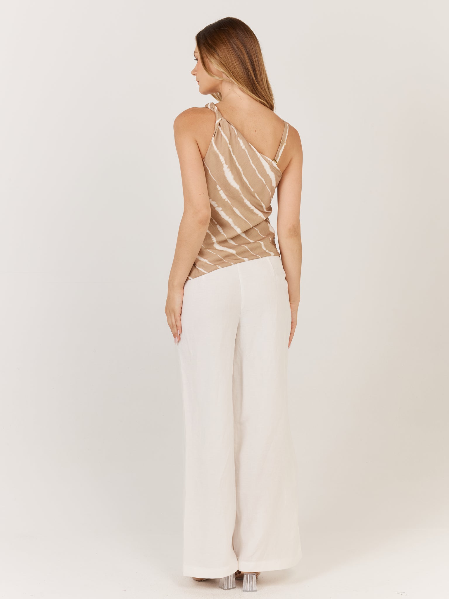 The Haven Top is an effortlessly elegant choice with its unique twist shoulder detail and removable strap. A bias-cut design offers a flattering drape, while the side seam zip ensures a smooth, polished fit. Perfect for pairing with tailored separates or flowing skirts. A sophisticated, on-trend style for day-to-evening dressing.