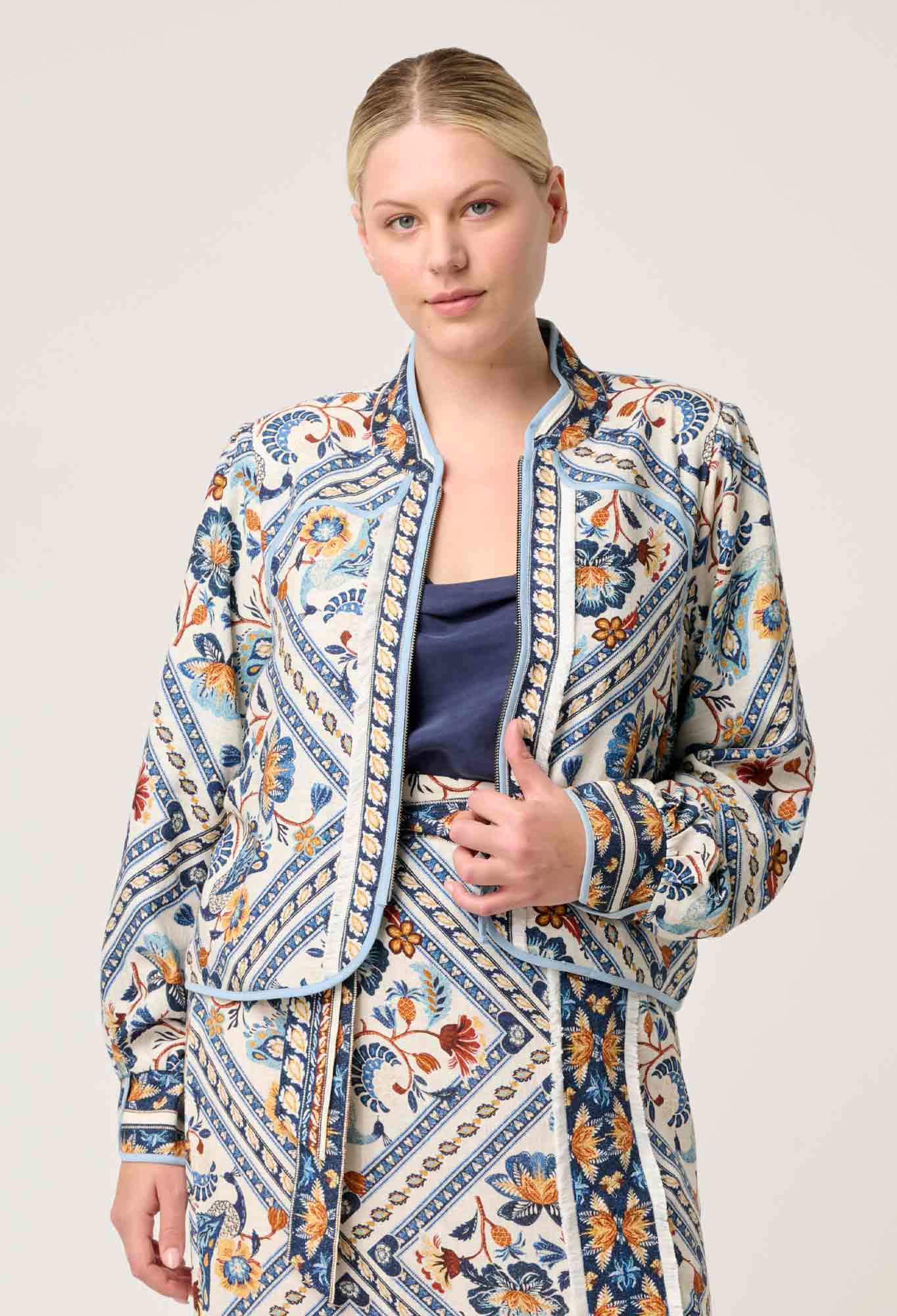 Finished with delicate fringe edging and tailored with a structured silhouette, the Aurora Jacket is ideal for dressing up denim or elevating a matching set. Whether worn open or zipped, floral or solid, it’s the piece that will take you seamlessly from brunch to boardwalk.