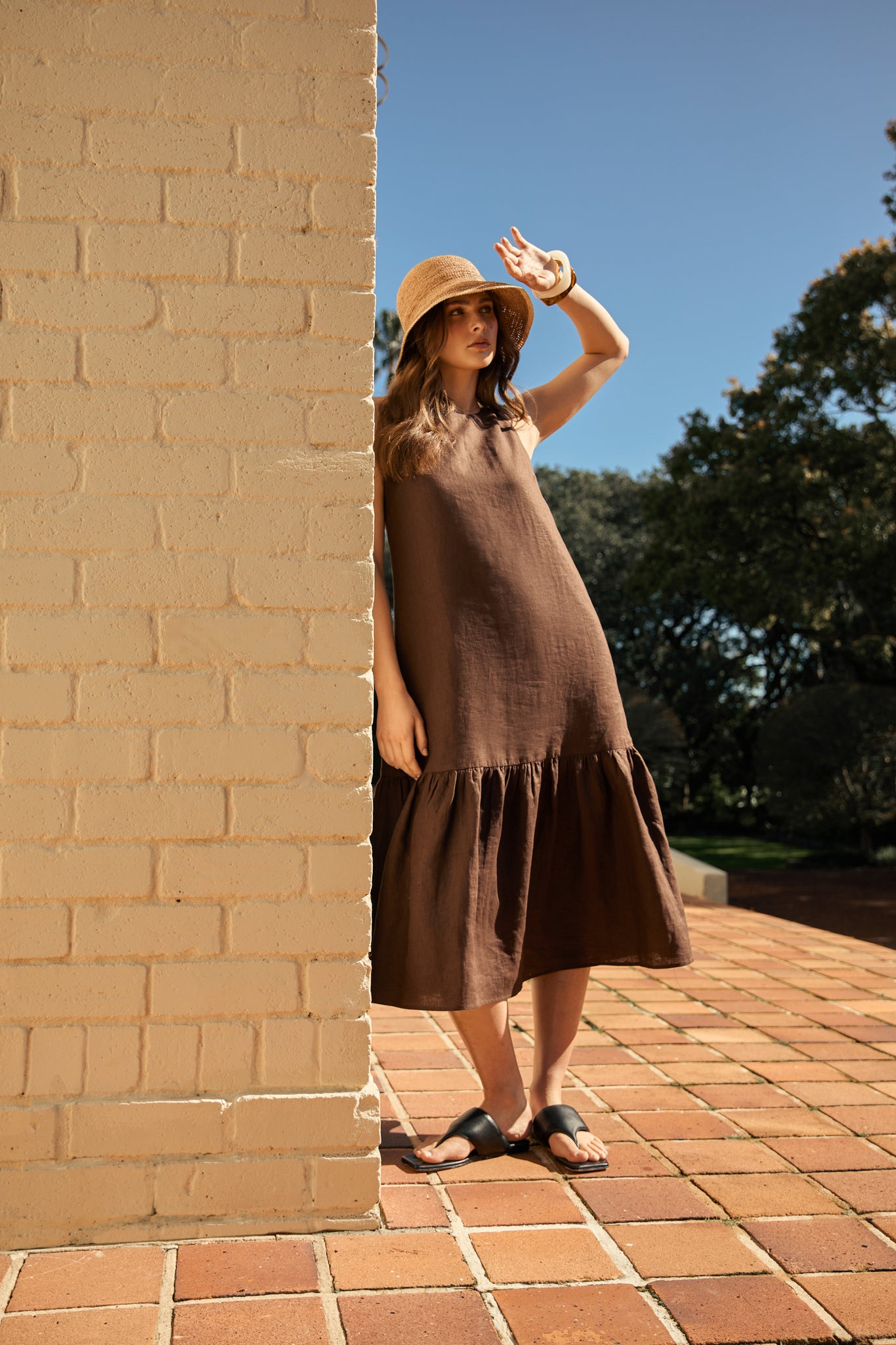 • Load image into Gallery viewer, MARLOW VERONA LINEN DRESS CAROB