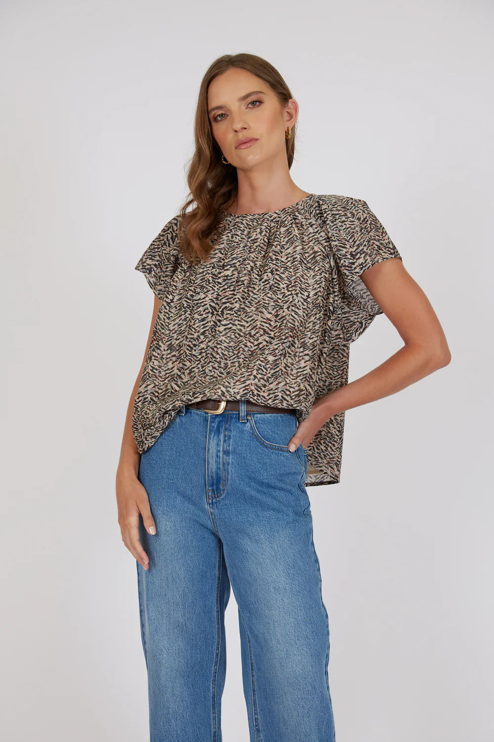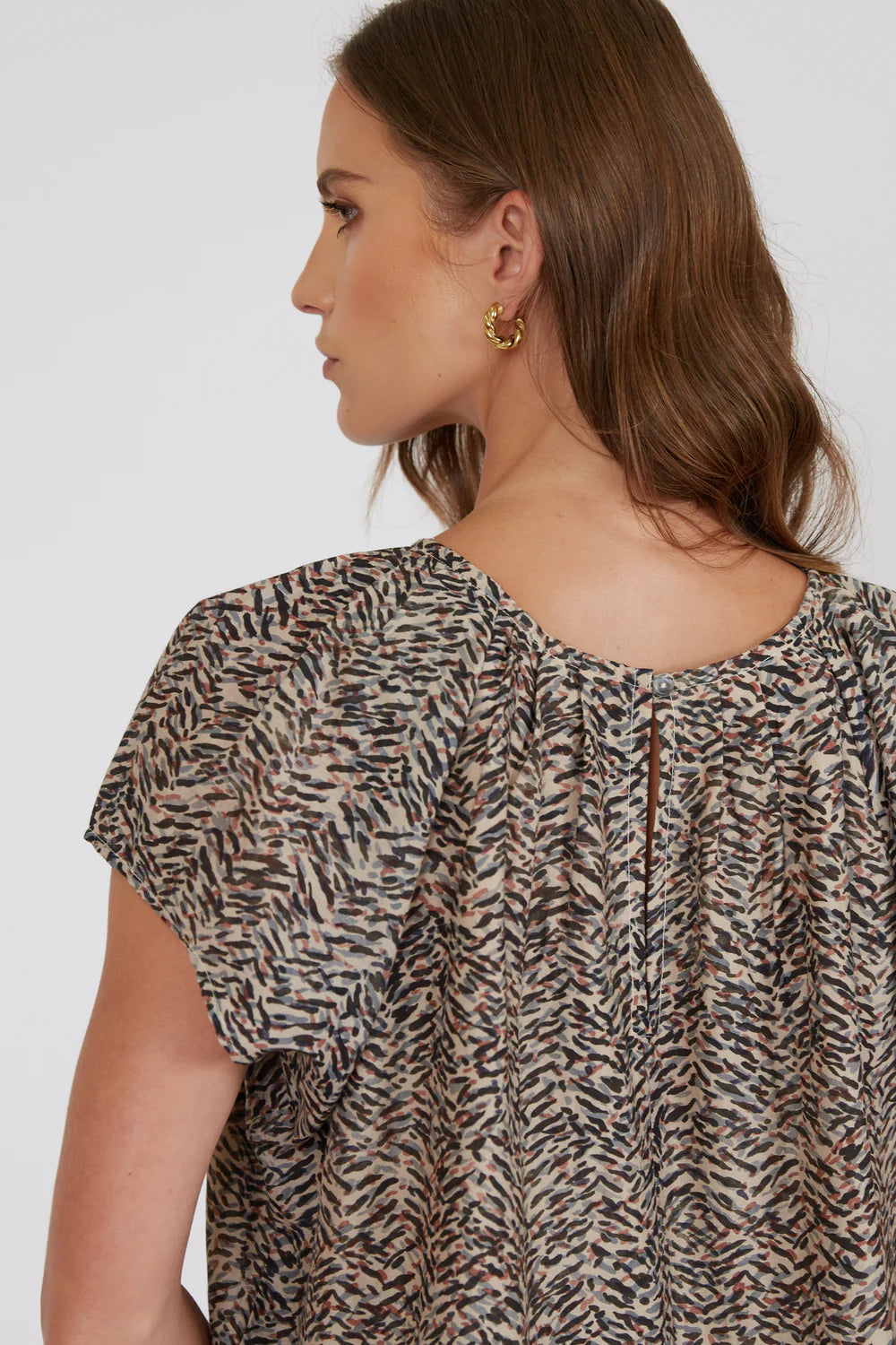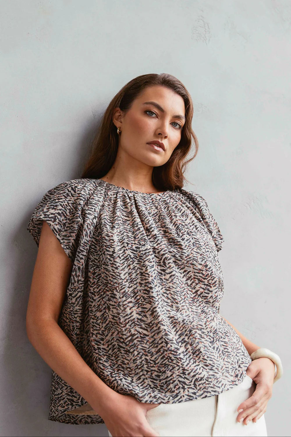 Elevate your summer wardrobe with the Aman Blouse - crafted from a luxurious blend of cotton and silk in a flowy, elegant silhouette. Its soft handfeel, lightweight drape, and subtle sheen are complemented by a bespoke in-house pattern. Designed with a feminine, shell silhouette, it features a crew neckline with delicate pleating and voluminous cap sleeves. Style with your favourite Marlow Denim or Palma Shorts for versatile summer dressing.