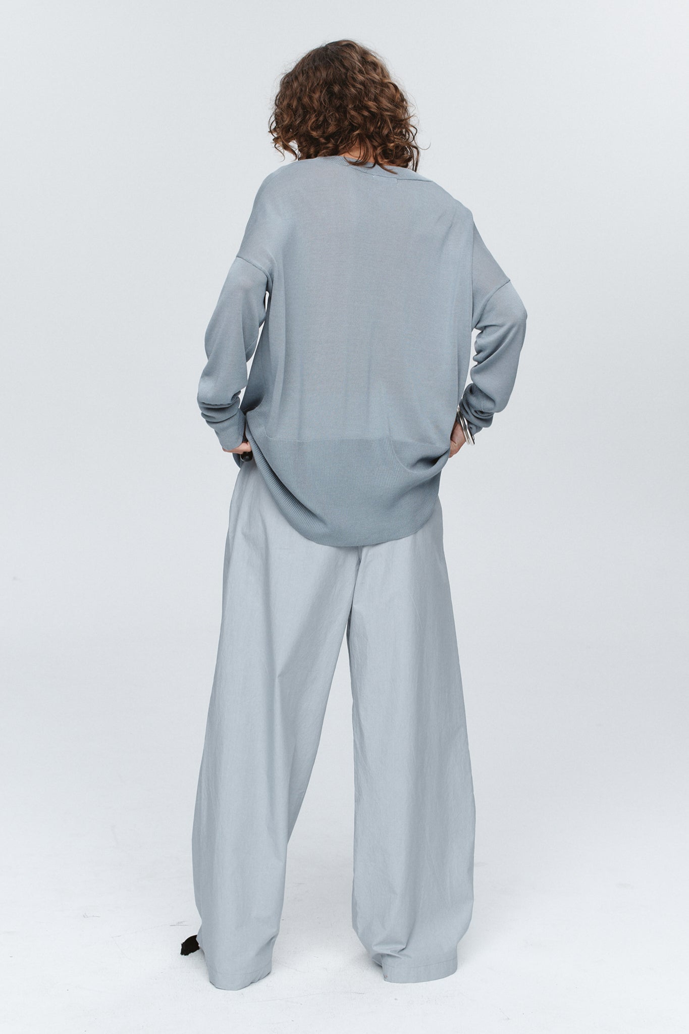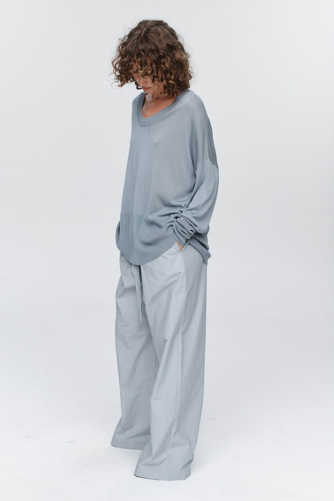 A lightweight knit, crafted from a soft, breathable cloth. Designed in a fluid, oversized shape, it falls with an easy drape, softened by a wide ribbed hem. The generous scoop neckline and subtly dropped shoulders create a relaxed yet elegant proportion, perfect for layering. With its semi-sheer finish, The Hope Jumper adds quiet dimension, balancing ease with understated sensuality.