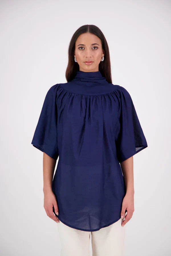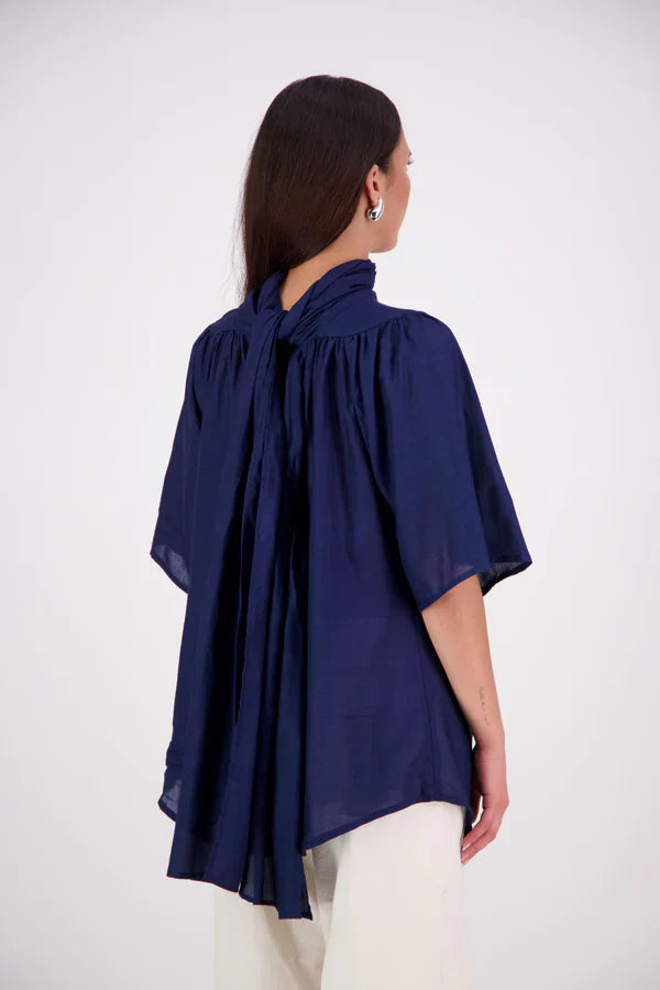 The N-E-S Nova Shirt blends the best of our Ayla, Mon, and Del shirts into one must-have wardrobe piece. Featuring elbow-length sleeves, a soft drop hem at the front and back, and a playful neck tie that can be styled multiple ways—bowed, looped, or reversed and tied at the back. Designed for versatility and charm, the Nova Shirt is a timeless addition to elevate your everyday style.