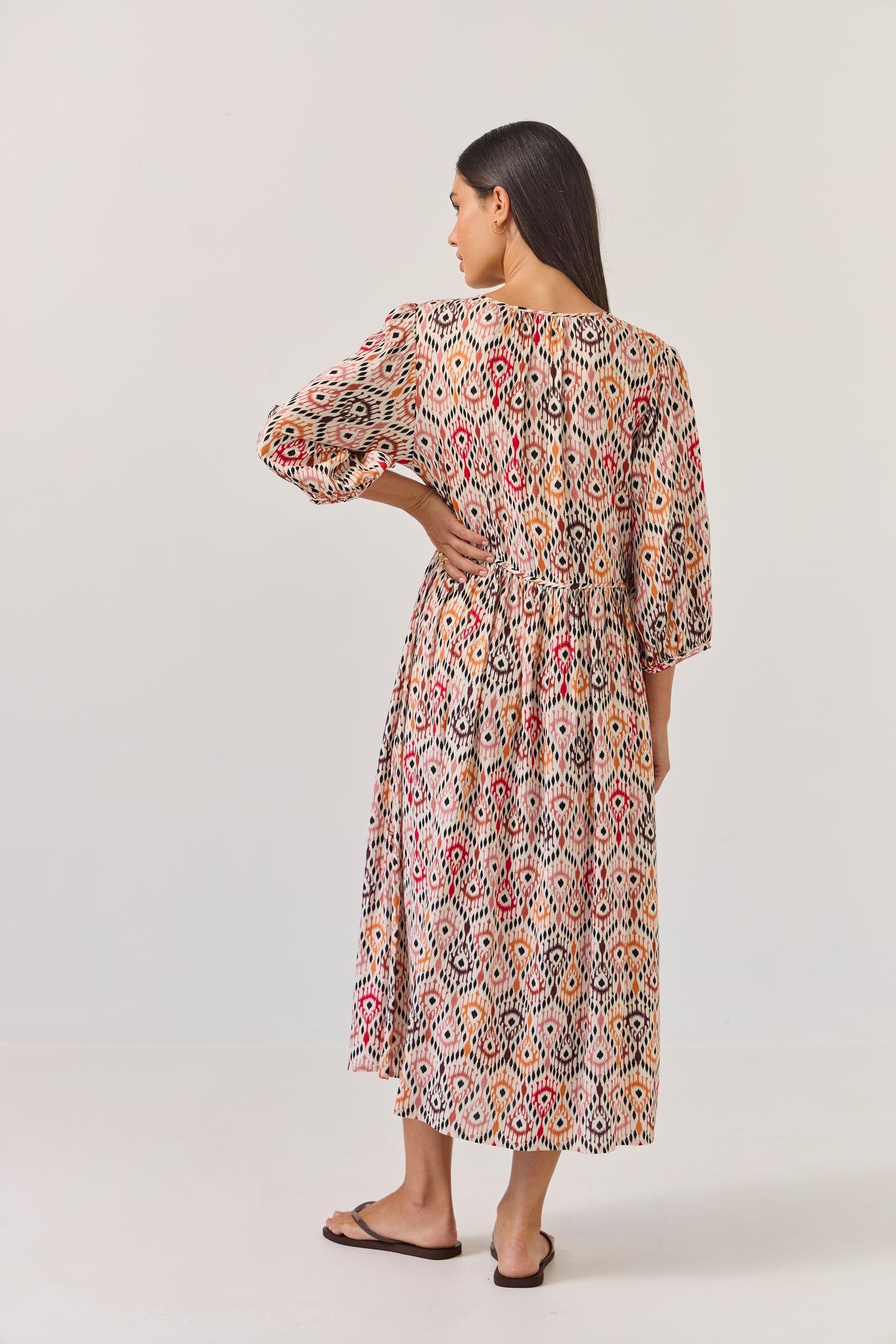 This dress is such a winner we’ve brought her back! Effortless, chic, seasonless & cool, Odette is that throw-on and go dress that is simple to style and ultra comfy. With her multi-functioning neckline (wear open for a beautiful soft v neck or tie closed for round neck coverage) and soft flowy body, she really is a dream to wear. Team with slides or sandals for elevated carefree days.