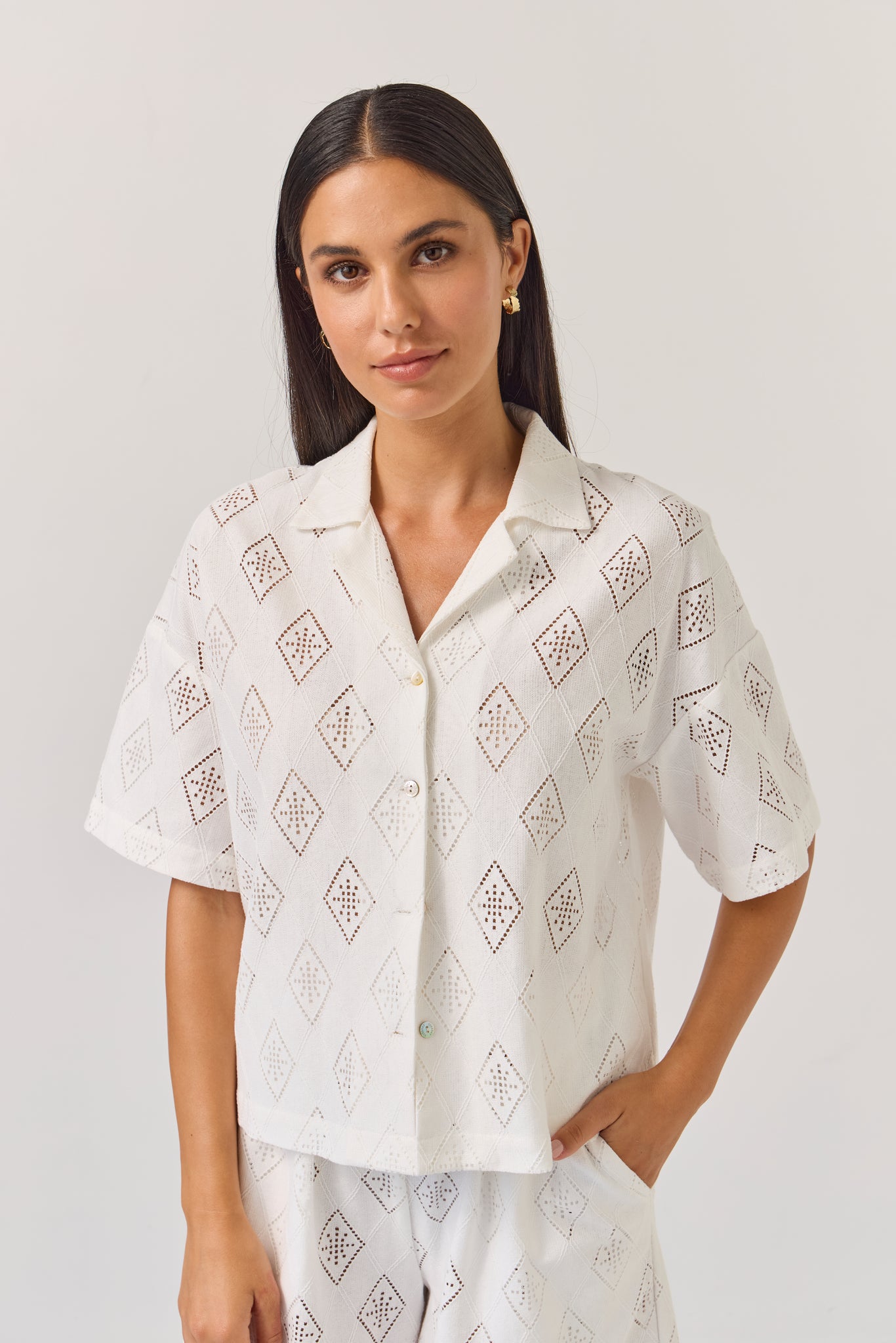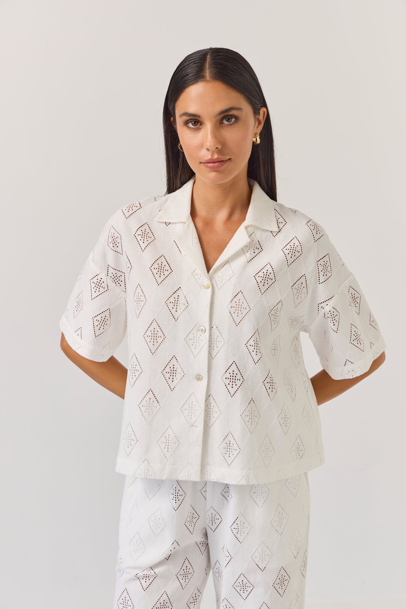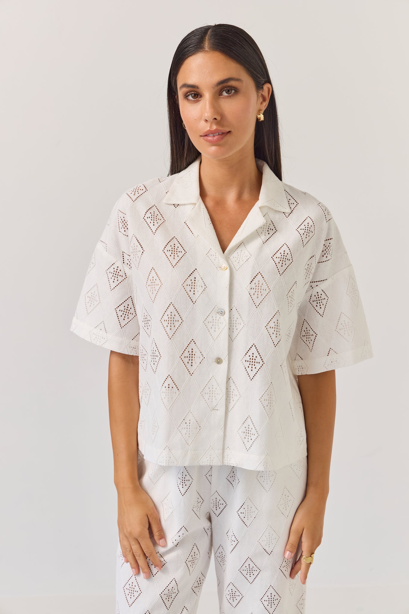 Everyone’s most-loved relaxed revere collar top in a brand new cotton cut-out embroidery. Wear with the matching Coast Pants or Umpire Shorts, or simply back with denim for a fresh summer look.