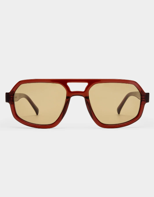 • Finished in a premium cherry crystal frame with khaki tint lenses.