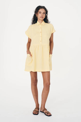 ROWIE MIRA LINEN MIDI DRESS LEMON