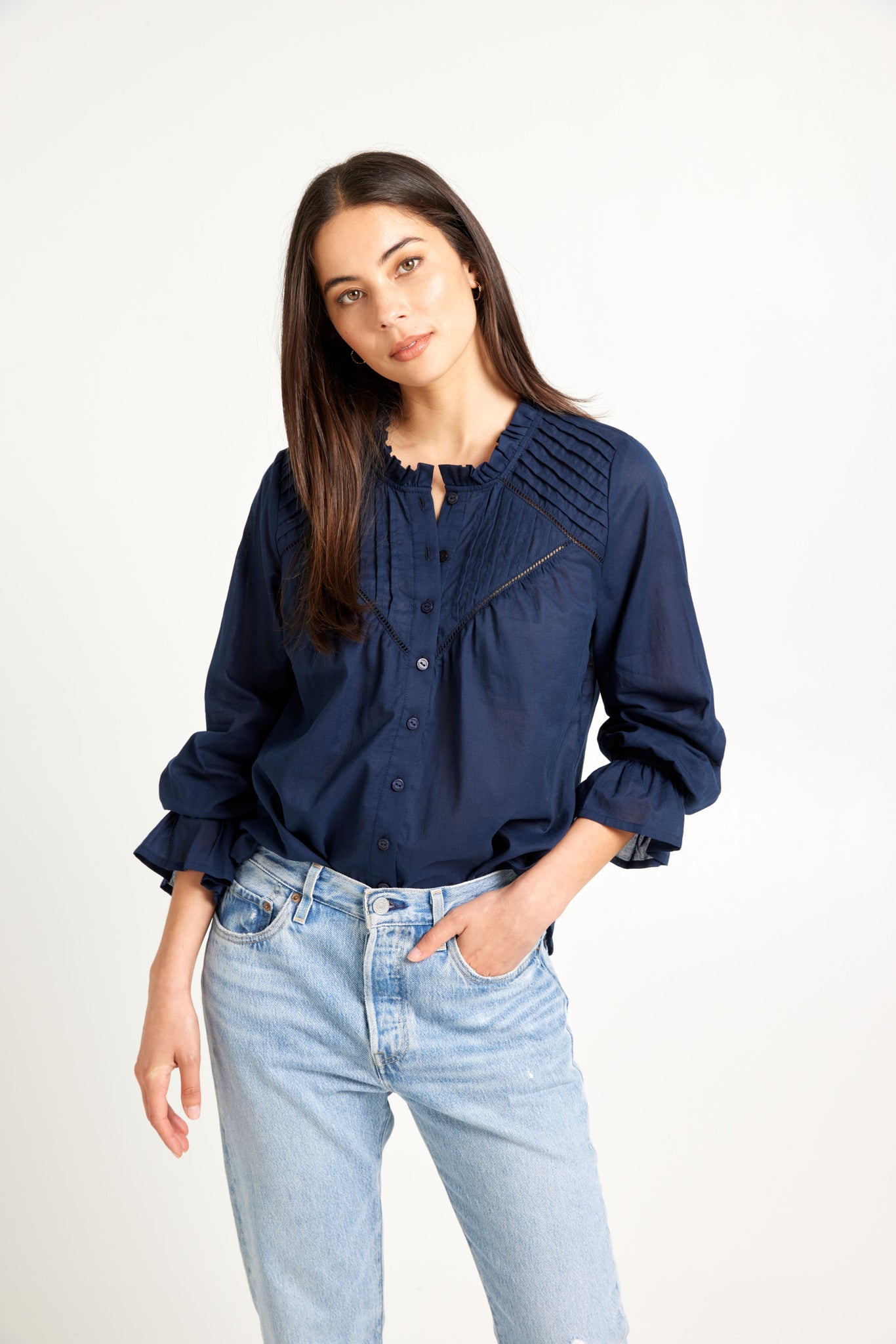 A TUESDAY favourite this easy-to-wear top in lush navy is the perfect smart casual piece with denim and great for work. Elevated with subtle yet intricate features, she’s an everyday winner. In a lightweight, breathable fabric she makes for valuable all-year-round dressing.