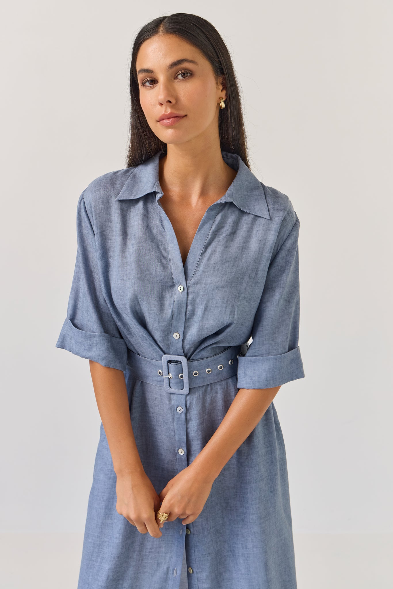 Our beautiful Sunray Dress now in a solid colour option. This shirt dress style suits all