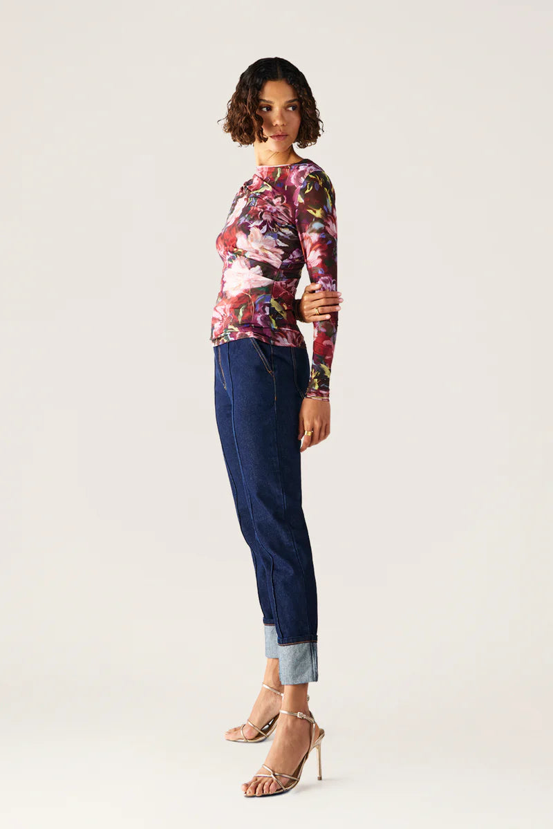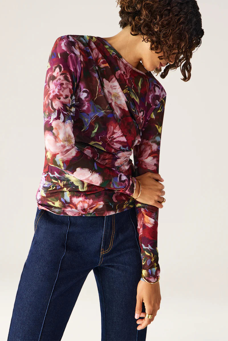 A beautifully feminine floral print is painted across textured mesh in the Giselle Top. Featuring a boat neckline, sheer sleeves and a fitted silhouette with gathered details across the bodice, this flattering top adds a touch of color and elegance to your winter wardrobe. Perfect for layering or wearing solo, the Giselle Top is a chic way to brighten up any outfit this season.
